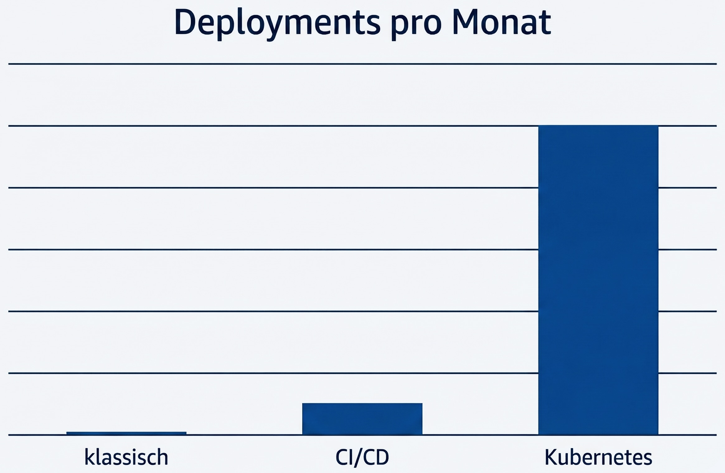 Durch CI/CD und Kuberentes ist es jeweils möglich, etwa 10 Mal so oft Änderungen an unserer Software vorzunehmen.